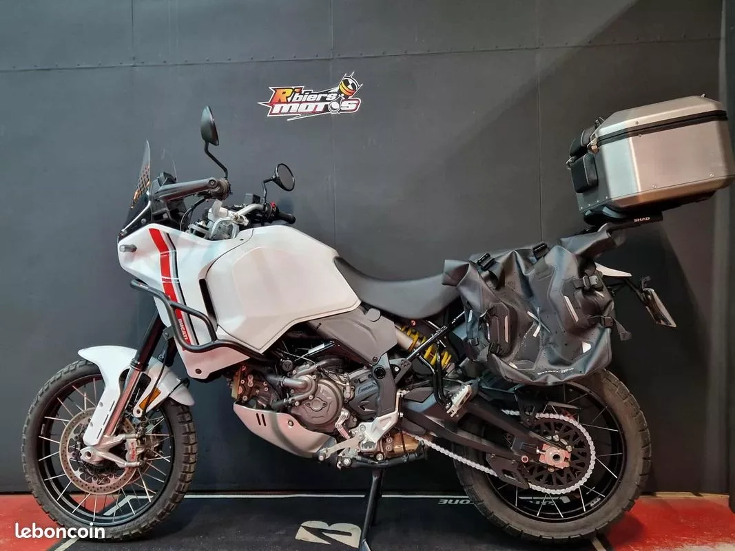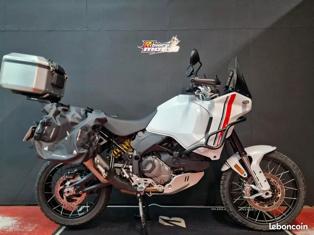 DUCATI DESERT-X 937cc Première main, très bon état . Entretien annuel réalisé pour la vente. Options: - Top case alu 2 casques - Valises souples SHAD (ferment à clé) - Crash bar - Béquille centrale Strictement aucuns frais à prévoir. GARANTIE CONSTRUCTEUR JUSQU'EN 06/2027 Financement possible de 12 à 72 mois, avec ou sans apport. Envoi possible dans toute la France ( en supplément ). Reprise de votre ancien véhicule possible. ---------- REPRISE ---------- Pour une étude veuillez nous envoyer: - Photos récentes d'ensemble + défauts (Rayures, bosses) - Kilométrage - Photo de la carte grise - Frais à effectuer - Date et kilométrage de la dernière révision - Double des clés disponibles? - Numéro de téléphone R’biers Motos 16 Rue la Guerche 85550 Les Herbiers Du Mardi au vendredi de 9h00 à 12h00 et 14h00 à 19h00 et le samedi de 9h00 à 16h30