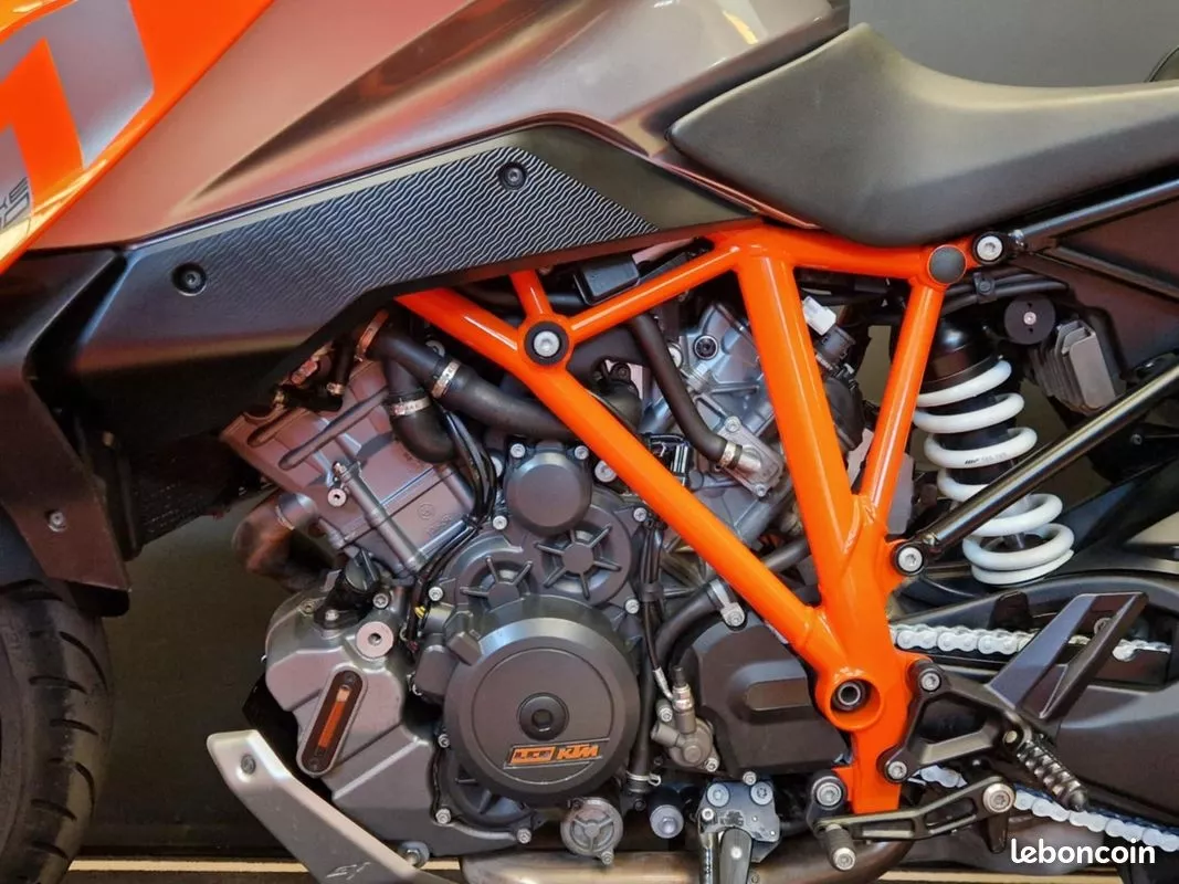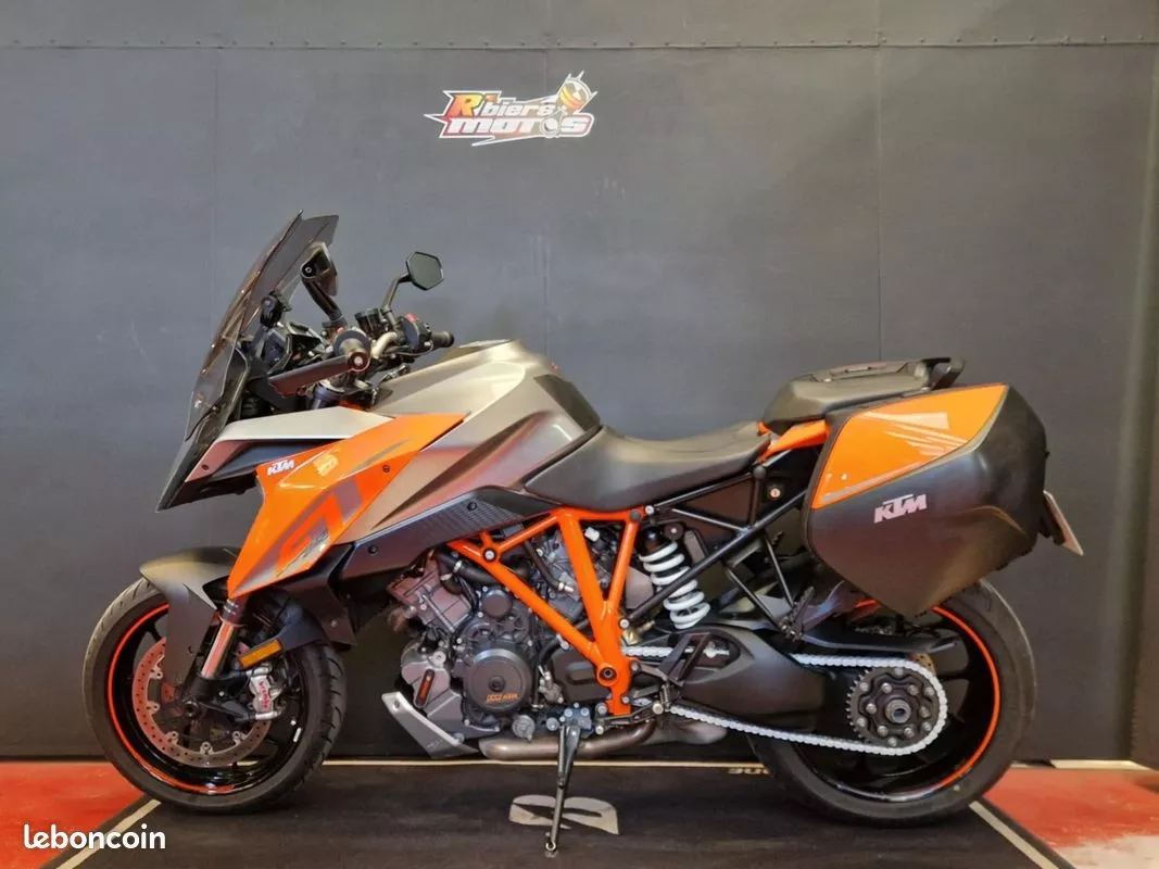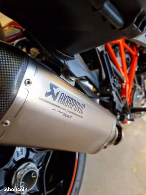 KTM SUPERDUKE GT de 2016. 20750kms. Véhicule en excellent état général et révisé pour la vente: -Entretien annuel OK -Plaquettes de frein AR neuves -Capteurs de pression des pneus neufs -CT OK Options: - Silencieux AKRAPOVIC - Valises latérales - Bulle haute Véhicule dispose des équipements ci-dessous : • ABS • feux LED • écran TFT • shifter • modes de conduite • suspensions pilotées • régulateur de vitesse • poignées chauffantes • protèges mains Strictement aucuns frais à prévoir GARANTIE 12 MOIS Financement possible de 12 à 72 mois, avec ou sans apport. Envoi possible dans toute la France ( en supplément ). Reprise de votre ancien véhicule possible. ---------- REPRISE ---------- Pour une étude veuillez nous envoyer: - Photos récentes d'ensemble + défauts (Rayures, bosses) - Kilométrage - Photo de la carte grise - Frais à effectuer - Date et kilométrage de la dernière révision - Double des clés disponibles? - Numéro de téléphone R’biers Motos 16 Rue la Guerche 85550 Les Herbiers Du Mardi au vendredi de 9h00 à 12h00 et 14h00 à 19h00 et le samedi de 9h00 à 16h30