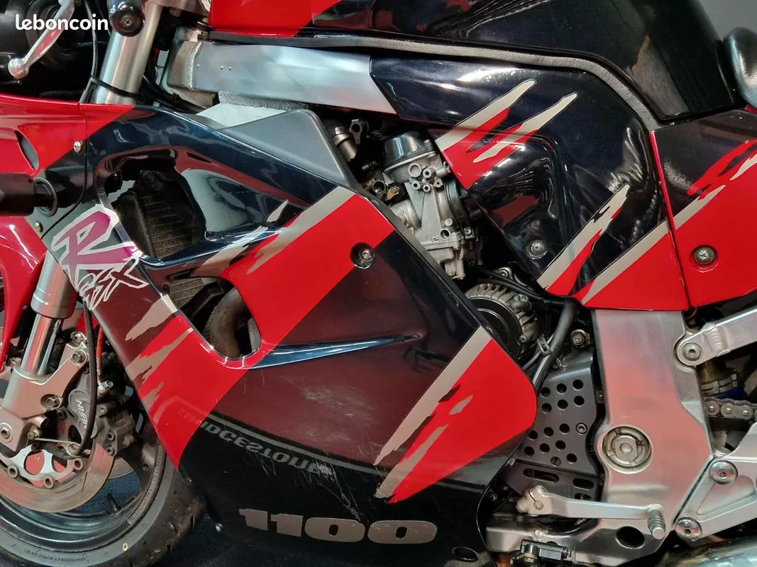 SUZUKI 1100 GSX-R Véhicule en bon état général et révisé pour la vente - Vidange moteur + filtre à huile - Nettoyage du filtre à air (K&N) - 2 pneus très récents - CT OK Moto équipée d'un amortisseur EMC haut de gamme. Strictement aucuns frais à prévoir Parfait état de fonctionnement, mais pas de garantie garage sur ce véhicule. Envoi possible dans toute la France ( en supplément ). Reprise de votre ancien véhicule possible. ---------- REPRISE ---------- Pour une étude veuillez nous envoyer: - Photos récentes d'ensemble + défauts (Rayures, bosses) - Kilométrage - Photo de la carte grise - Frais à effectuer - Date et kilométrage de la dernière révision - Double des clés disponibles? - Numéro de téléphone R’biers Motos 16 Rue la Guerche 85550 Les Herbiers Du Mardi au vendredi de 9h00 à 12h00 et 14h00 à 19h00 et le samedi de 9h00 à 16h30