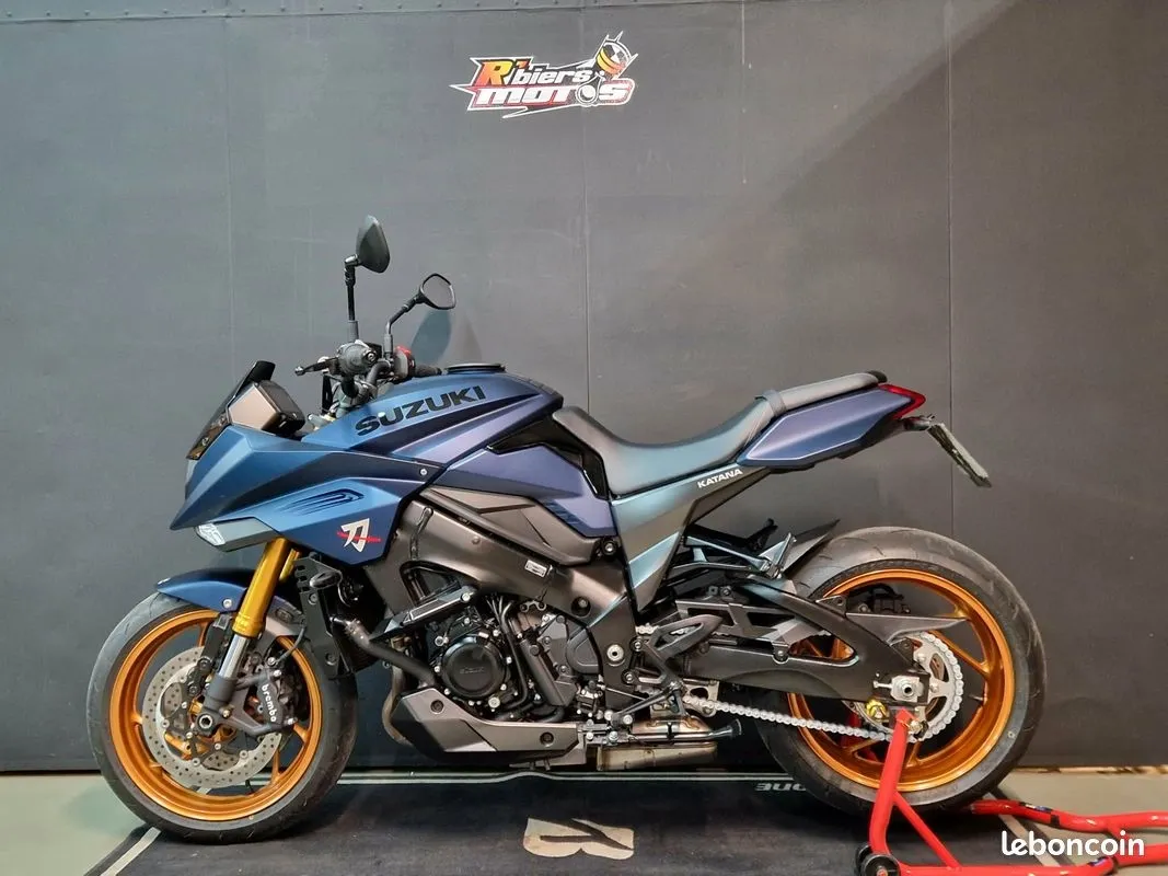 SUZUKI 1000 KATANA Véhicule de première main en excellent état. Option: - Shifter - Support plaque court - Protections type "Top bloc" - Prédisposition pour sacoche de réservoir Strictement aucuns frais à prévoir GARANTIE CONSTRUCTEUR Financement possible de 12 à 72 mois, avec ou sans apport. Envoi possible dans toute la France ( en supplément ). Reprise de votre ancien véhicule possible. ---------- REPRISE ---------- Pour une étude veuillez nous envoyer: - Photos récentes d'ensemble + défauts (Rayures, bosses) - Kilométrage - Photo de la carte grise - Frais à effectuer - Date et kilométrage de la dernière révision - Double des clés disponibles? - Numéro de téléphone R’biers Motos 16 Rue la Guerche 85550 Les Herbiers Du Mardi au vendredi de 9h00 à 12h00 et 14h00 à 19h00 et le samedi de 9h00 à 16h30