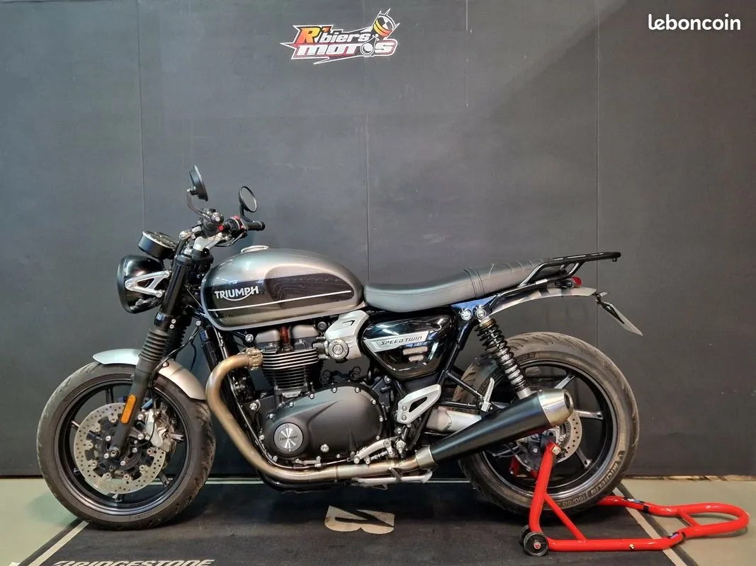 TRIUMPH 1200 SPEED TWIN Véhicule en très bon état général - Entretien à jour - 2 pneus très récents - CT OK Options: - Porte paquet arrière - Amortisseurs 2win shock factory Strictement aucuns frais à prévoir GARANTIE 12 MOIS Financement possible de 12 à 72 mois, avec ou sans apport. Envoi possible dans toute la France ( en supplément ). Reprise de votre ancien véhicule possible. ---------- REPRISE ---------- Pour une étude veuillez nous envoyer: - Photos récentes d'ensemble + défauts (Rayures, bosses) - Kilométrage - Photo de la carte grise - Frais à effectuer - Date et kilométrage de la dernière révision - Double des clés disponibles? - Numéro de téléphone R’biers Motos 16 Rue la Guerche 85550 Les Herbiers Du Mardi au vendredi de 9h00 à 12h00 et 14h00 à 19h00 et le samedi de 9h00 à 16h30